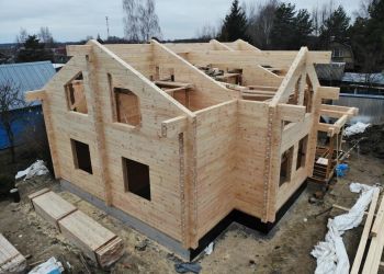 Это полностью индивидуальный проект нашего заказчика. Общая площадь дома составляет 182,8 квадратных метров. В строительстве мы использовали клееный брус собственного производства из сосны сечением 205х185(h) мм.
