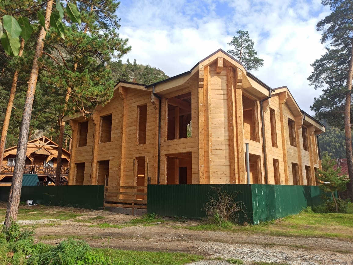 Завершили работы по монтажу финишного покрытия кровли и водосточной системе. Это полностью индивидуальный проект нашего заказчика. Общая площадь гостиницы составляет 310,99 м2.