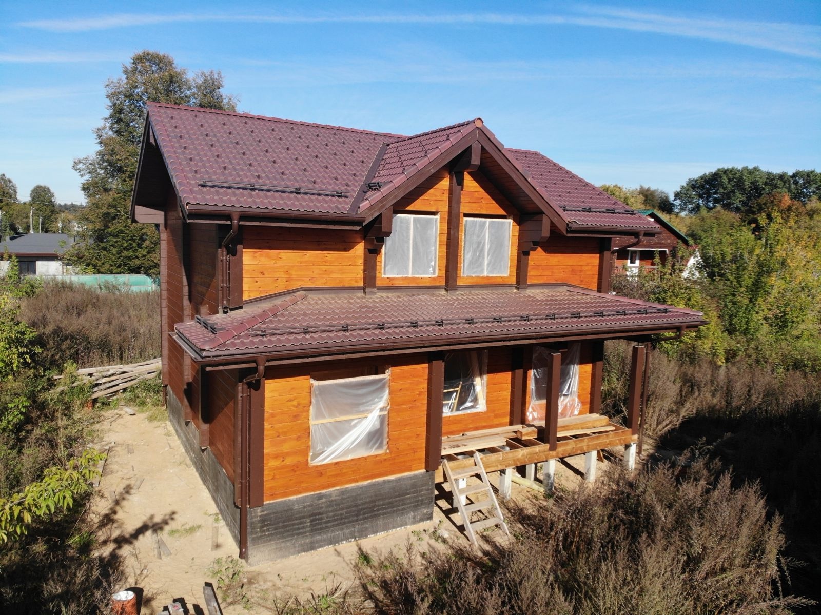 Наша бригада завершила внешнее окрашивание дома и бани. Это индивидуальный проект нашего заказчика. Площадь дома составляет 256,38 квадратных метров, а площадь бани 158 квадратных метров.