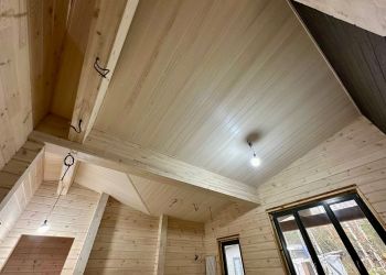Наша бригада выполняет отделочные работы потолков в доме. Дом построен по нашему типовому проекту Анси с индивидуальными изменениями планировки.