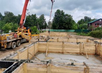 Наша бригада приступила к заливке фундамента дома и бани. Проекты дома и бани являются полностью индивидуальными. Площадь дома составляет 256,38 м2 и бани 164,3 м2.