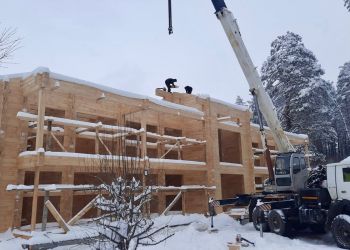Мы завершаем монтаж сруба дома. В строительстве используется клееный брус собственного производства из сосны с сечением 185х205 мм. Индивидуальный проект нашего заказчика. Двухэтажный дом общей площадью 510 квадратных метров.