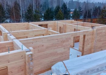 Наша бригада приступила к монтажу сруба дома. В строительстве мы используем клееный брус собственного производства из сосны с сечением 185х205 мм. Полностью индивидуальный проект нашего заказчика. Двухэтажный дом общей площадью 510 квадратных метров.