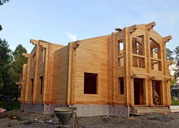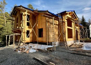 Площадь дома составляет 354 квадратных метра. Всего будет построено 3 здания из клееного бруса по индивидуальному проекту нашего заказчика. В строительстве мы используем клееный брус собственного производства из сосны с сечением 185х285 мм.