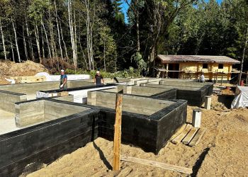 Наша бригада завершила сборку сруба бани. Сейчас она приступает к возведению дома. Здесь мы построим гараж, дом и баню. Это индивидуальный проект, разработанный для нашего заказчика.