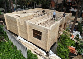 Сейчас наша бригада выполняет работы по сборке сруба дома. Это полностью индивидуальный проект нашего заказчика. Общая площадь дома составляет 186,85 квадратных метров. В строительстве мы будем использовать клееный брус собственного производства из сосны сечением 205х185 мм.