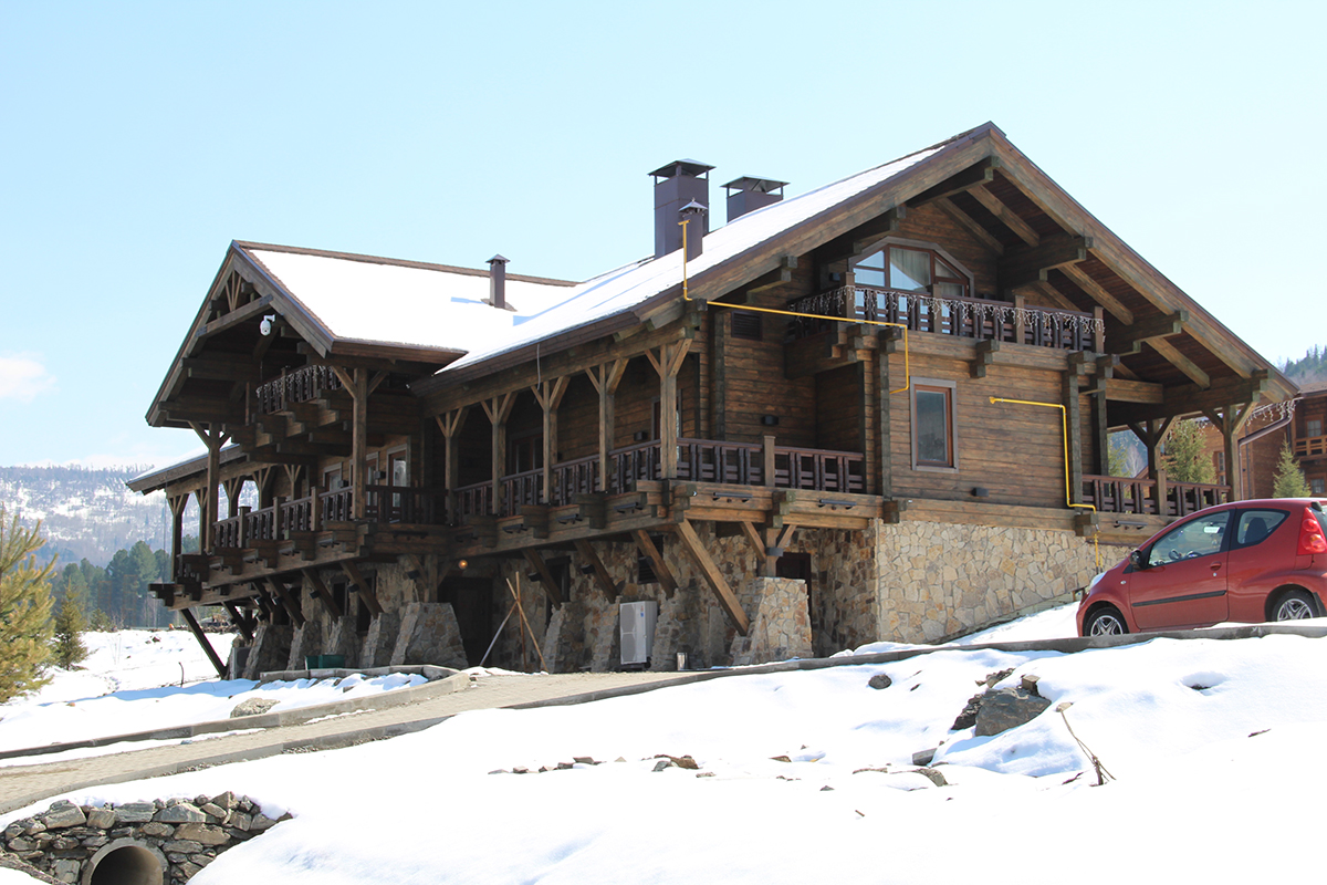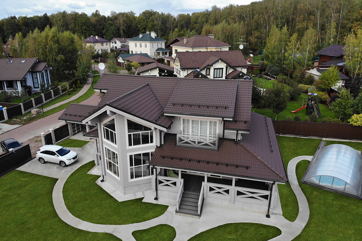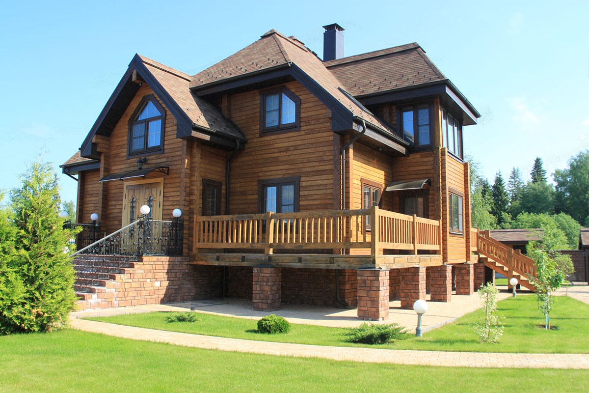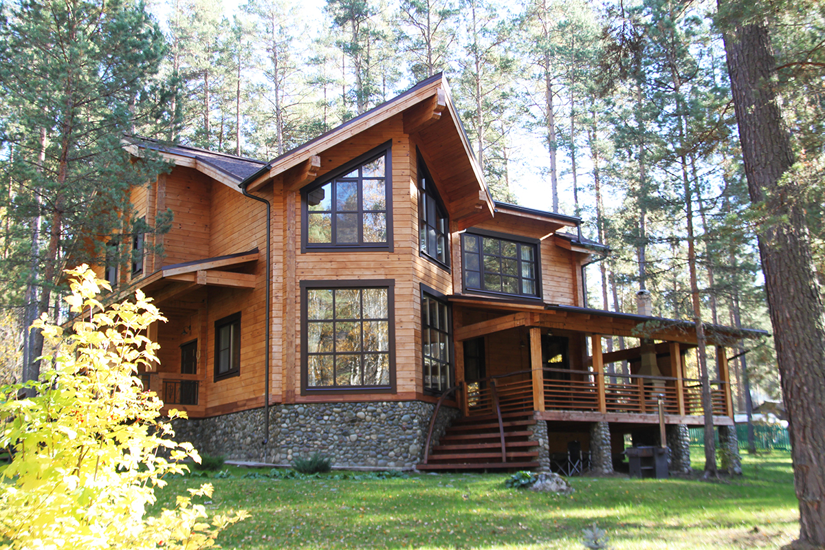 Дом из клееного бруса подчеркивает престиж его владельца и полностью соответствует атмосфере загородного проживания.