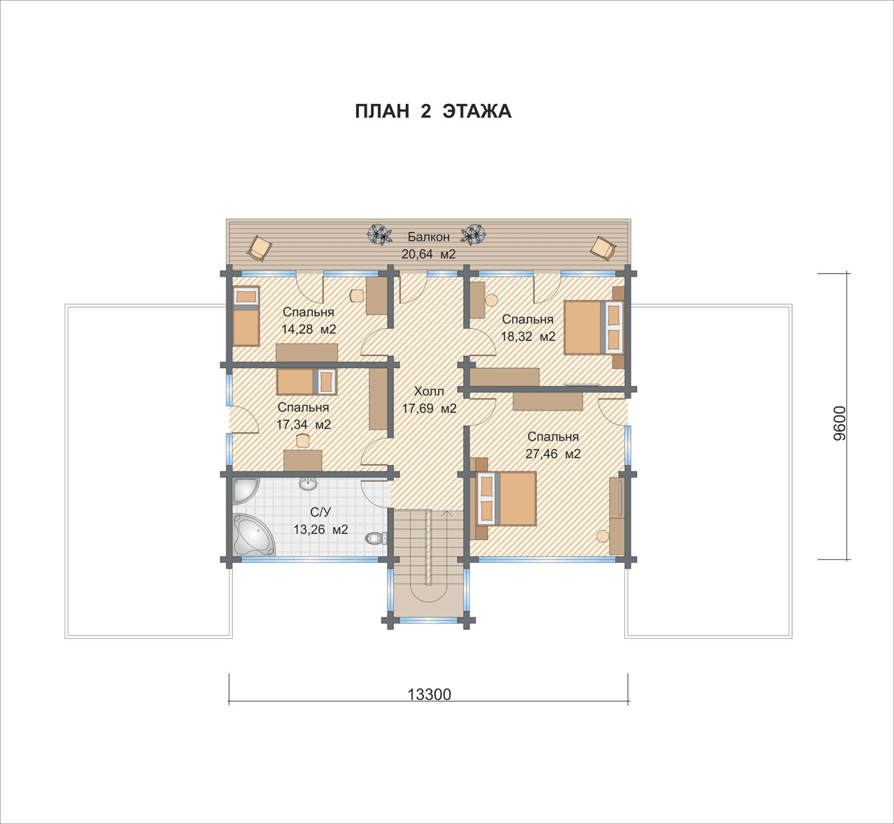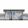 По проекту "Феникс" - двухэтажное здание, которое также оснащено двумя большими открытыми террасами (выход на которые происходит через спальни на втором этаже).