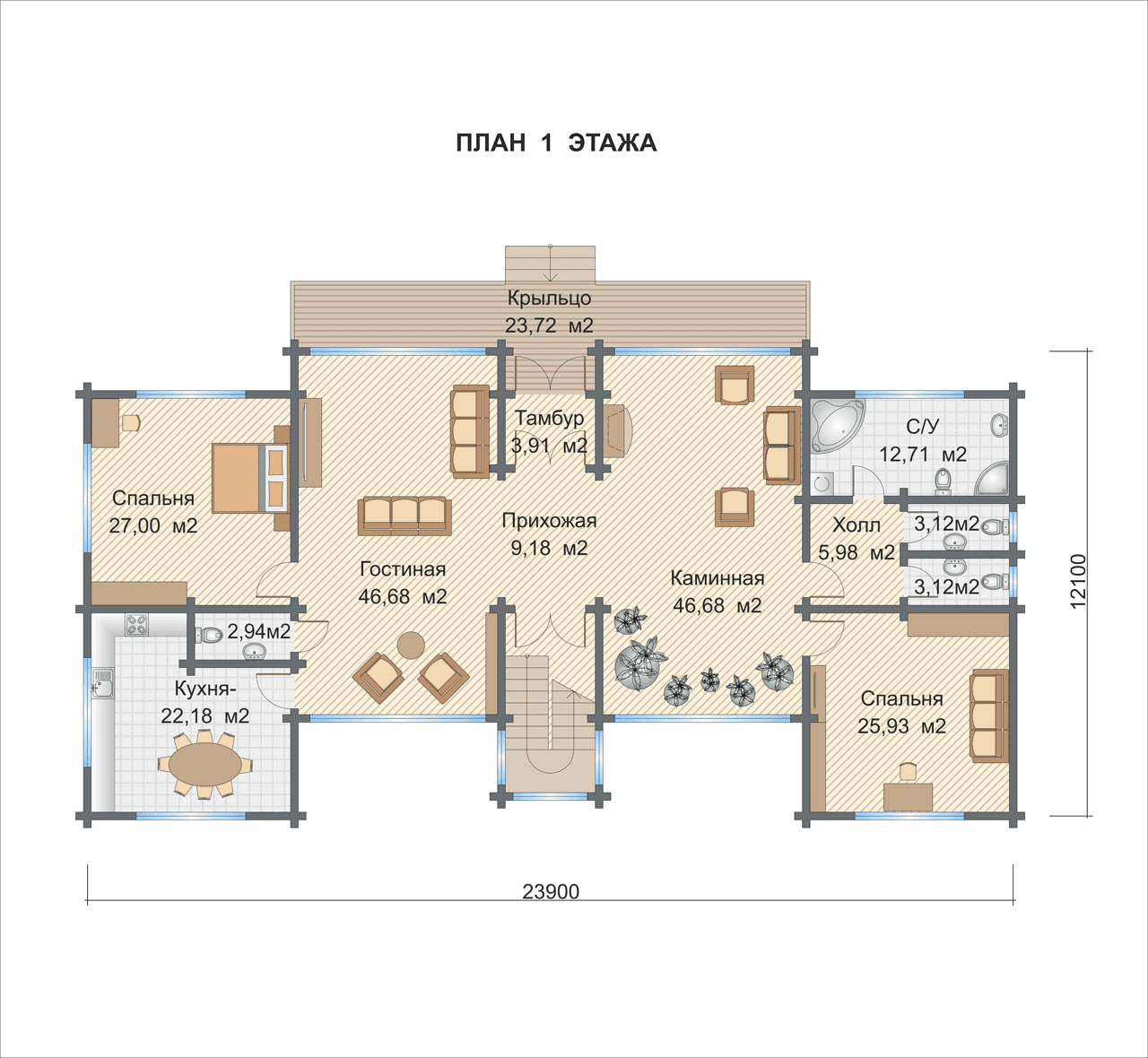 Базовые планировки Дом из клееного бруса Феникс 1