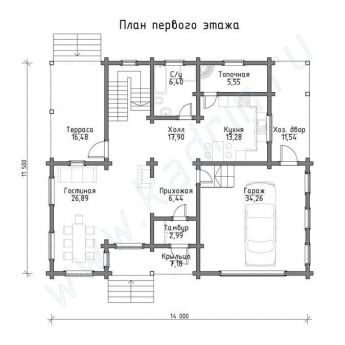 Также, в доме есть большая гостиная, совмещенная с кухней-столовой.