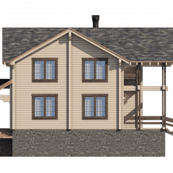 Полезная площадь проекта "Голубой Залив" - 257 кв.м. Площадь крыльца составляет - 17,68 кв.м., площадь террасы - 38,82 кв.м., площадь балкона - 11,84 кв.м.