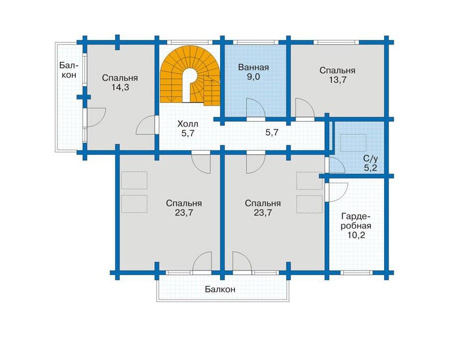 Также дом оборудован двумя санузлами и балконами в трех спальнях.