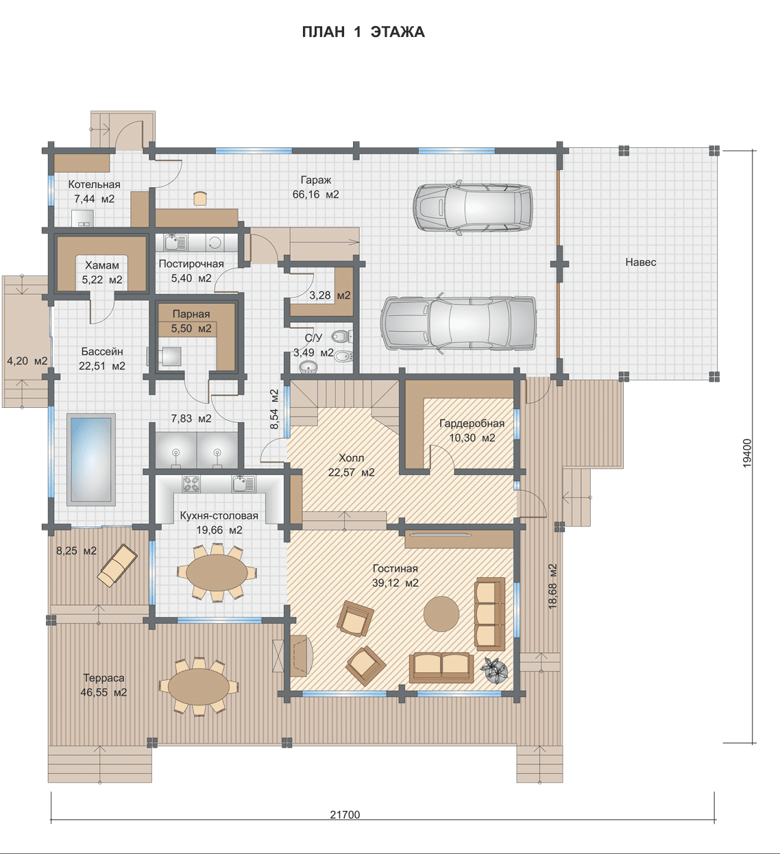 Мы выбрали проект бани из готовых проектов на сайте (выбор очень большой). Мы остановились на бане «Раума». По строительству хочу отметить высокий профессионализм ребят, работы велись точно по срокам. Я впервые познакомилась со строительством из клееного бруса, и, честно говоря, результат превзошел все мои ожидания. Баня получилась точь-в-точь как на картинке, даже еще лучше. Внутри выглядит очень стильно. И я боялась, что 65 квадратов маловато, но, оказалось, что для нашей компании это в самый раз!