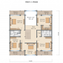 По проекту в здании есть 4 спальни + 1 мастер-спальня, которые можно переоборудовать под другие любые необходимые помещения. Каждая из спален имеет собственный балкон, площадью 7,8 кв.м. Также дом оборудован 4-мя С/У.